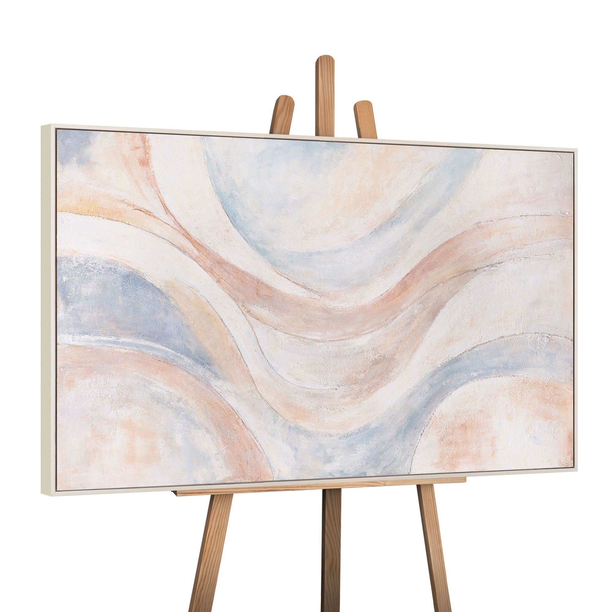 «Лінії вітру» — це витончена абстрактна композиція, де м’які хвилі та плавні лінії перетікають одна в одну, створюючи враження повітряного руху. Пастельна гама — бежевий, пісочний, кремовий, світло-блакитний — нагадує легкий вітер, що танцює над піском або стелиться крізь свіже ранкове повітря. Завдяки фактурній поверхні кольори набувають глибини та м’якості, утворюючи делікатну динаміку у кожному вигині.
