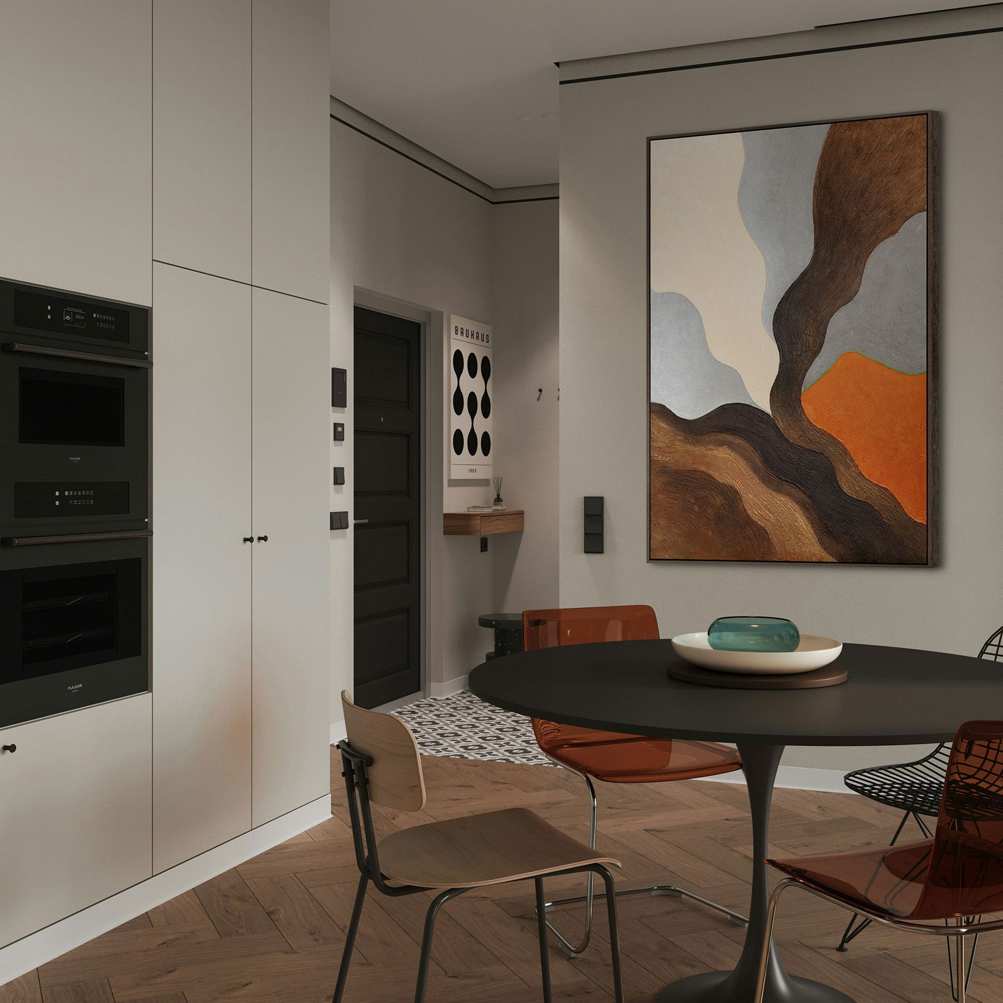 Ця картина стане центральним акцентом у сучасному чи мінімалістичному інтер’єрі. Її природна кольорова гама створює атмосферу затишку й балансу, гармонійно поєднуючись із деревом, каменем та теплими текстурами.
