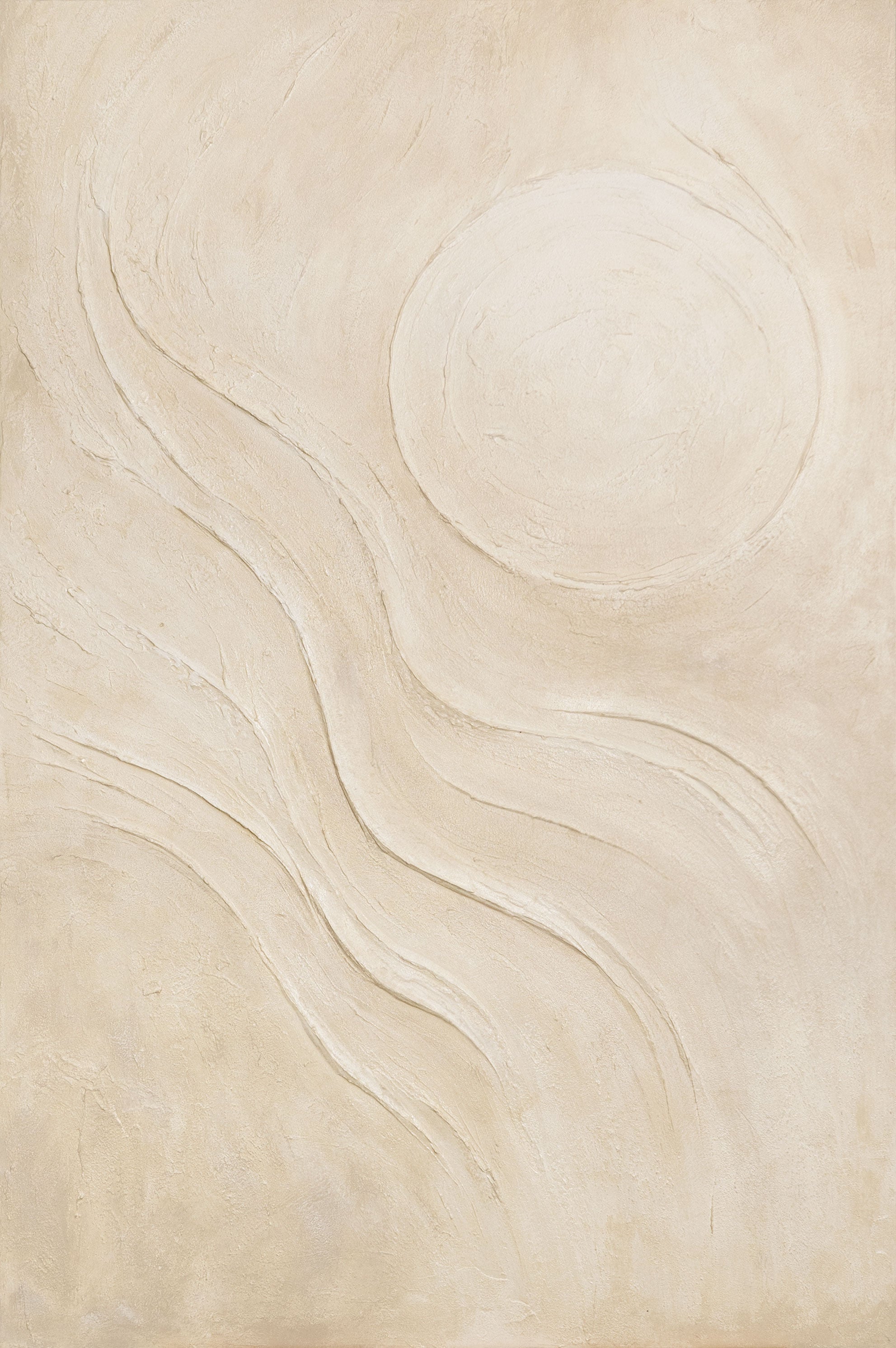 «Піщане сонце» випромінює спокій і природну гармонію. Теплі бежево-пісочні відтінки, що м’яко переходять один в одного, створюють ефект світла, що розливається по поверхні. Рельєфна текстура додає об’єму й нагадує про дотик до м’якого піску під лагідним сонцем.
