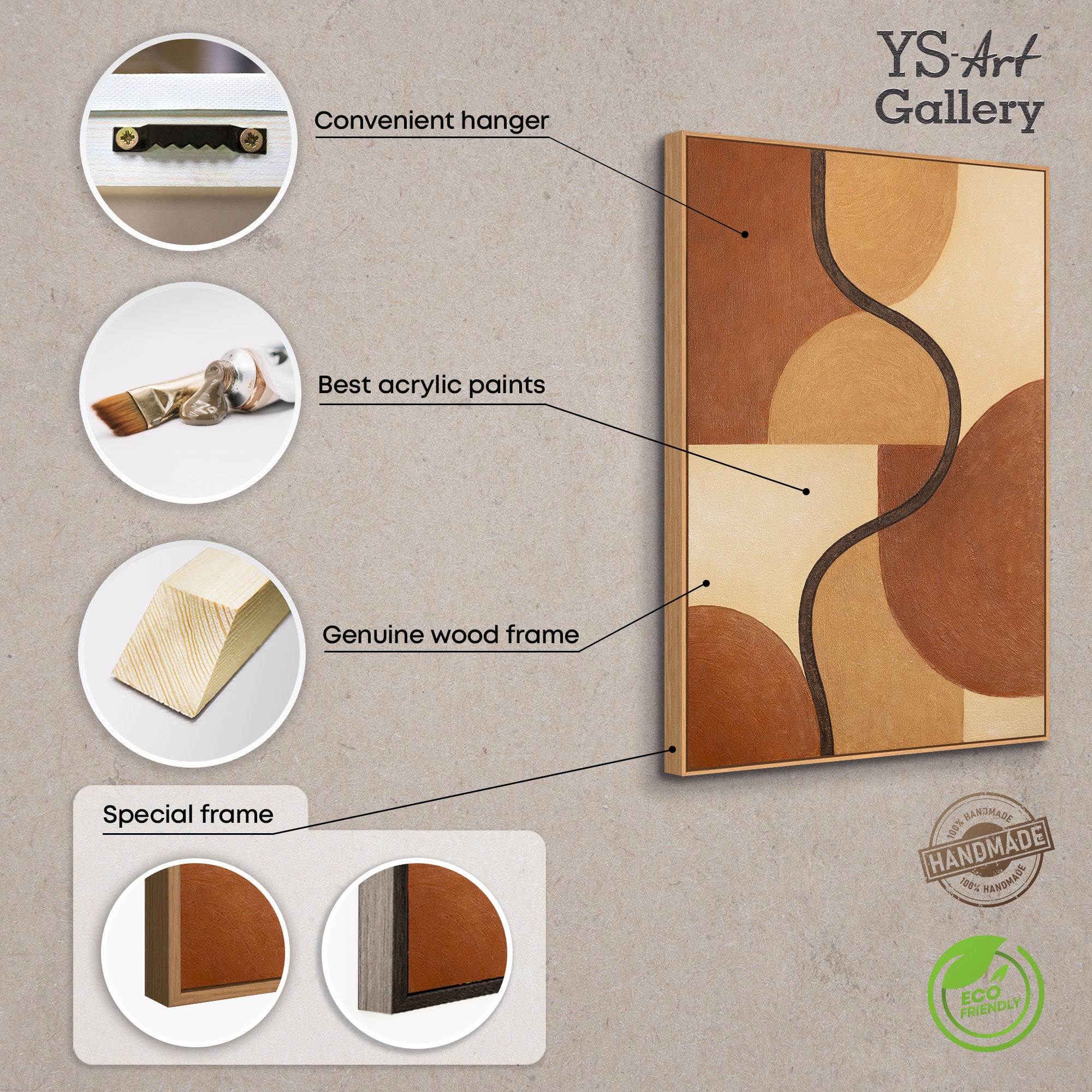 «Сплетіння форм» — це витончена гра ліній та геометричних обрисів у гармонійній палітрі охристих, коричневих і бежевих відтінків. Центральна хвиляста лінія додає композиції динаміки, створюючи візуальний ритм і відчуття природного руху. Картина поєднує спокій і енергію в одному балансі кольору та форми.
